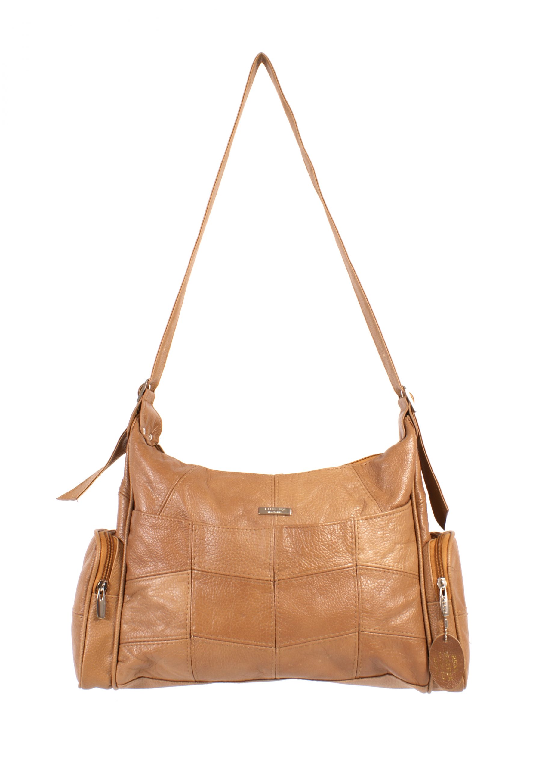 Lorenz cow hide leather handbag in a tote style with two main zipped sections, two side zipped pockets and an adjustable shoulder strap.
